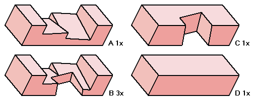 notches, piece B three notches, piece C just one notch and piece D is a solid